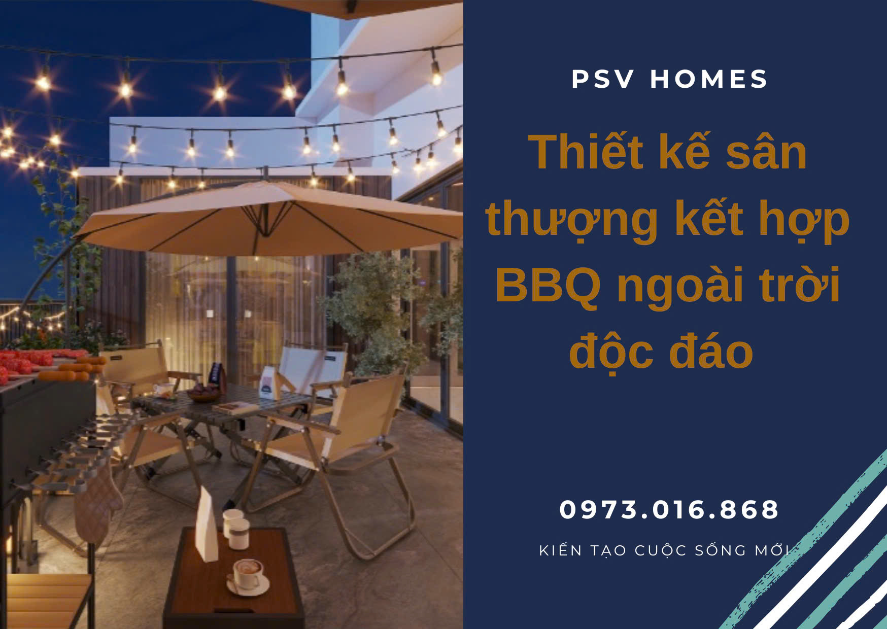 BBQ sân thượng là một trong những ý tưởng thiết kế sân thượng độc đáo, ấn tượng. Phong cách thiết kế này được giới trẻ đặc biệt yêu thích bởi tính hiện đại, tiện nghi mà chúng đem lại. Hãy cùng PSV HOMES đi tìm hiểu một số ý tưởng thiết kế BBQ sân thượng đẹp nhé!